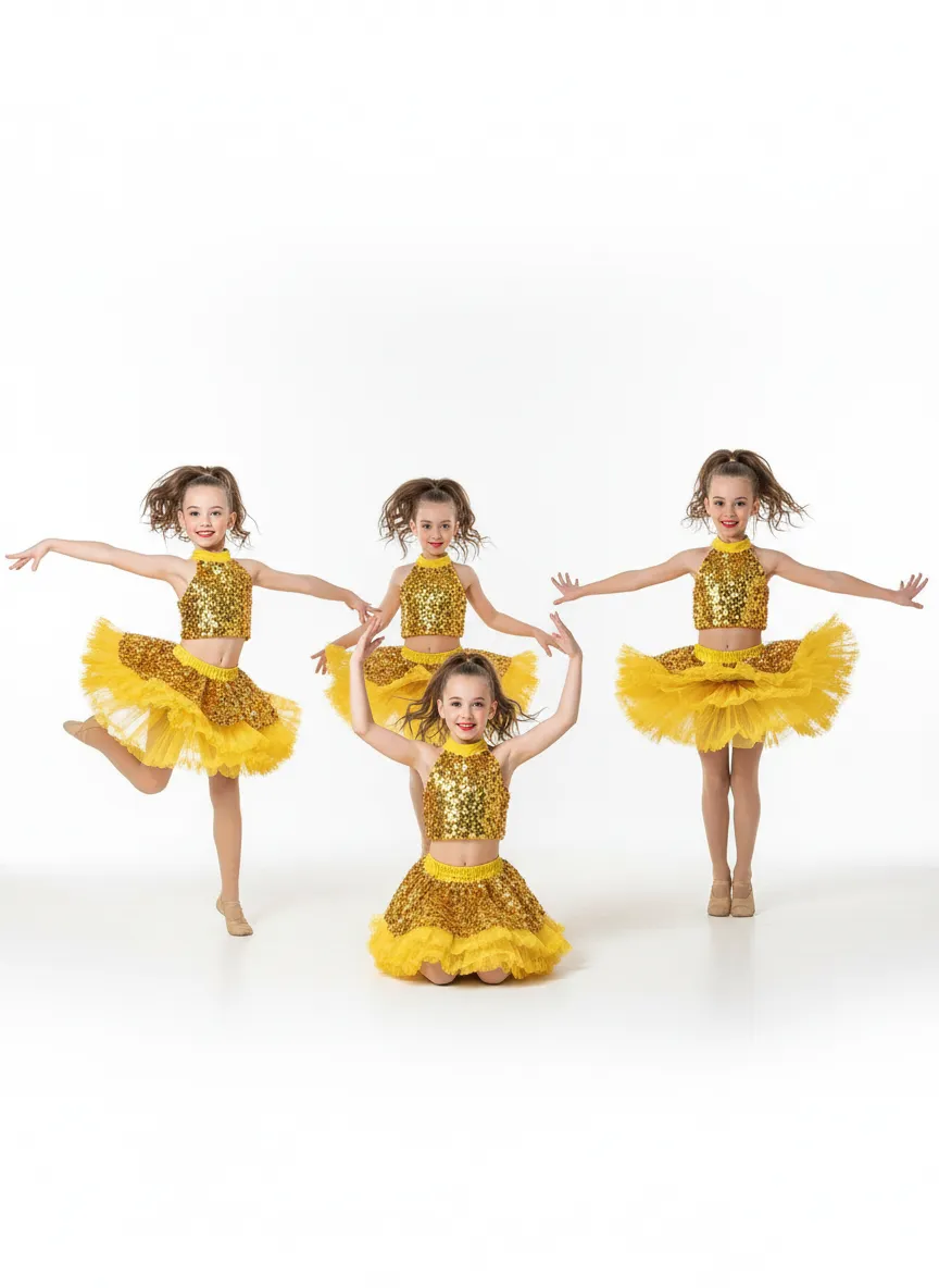 Girl's Shimmer Sequin Dance -Golden & Yellow