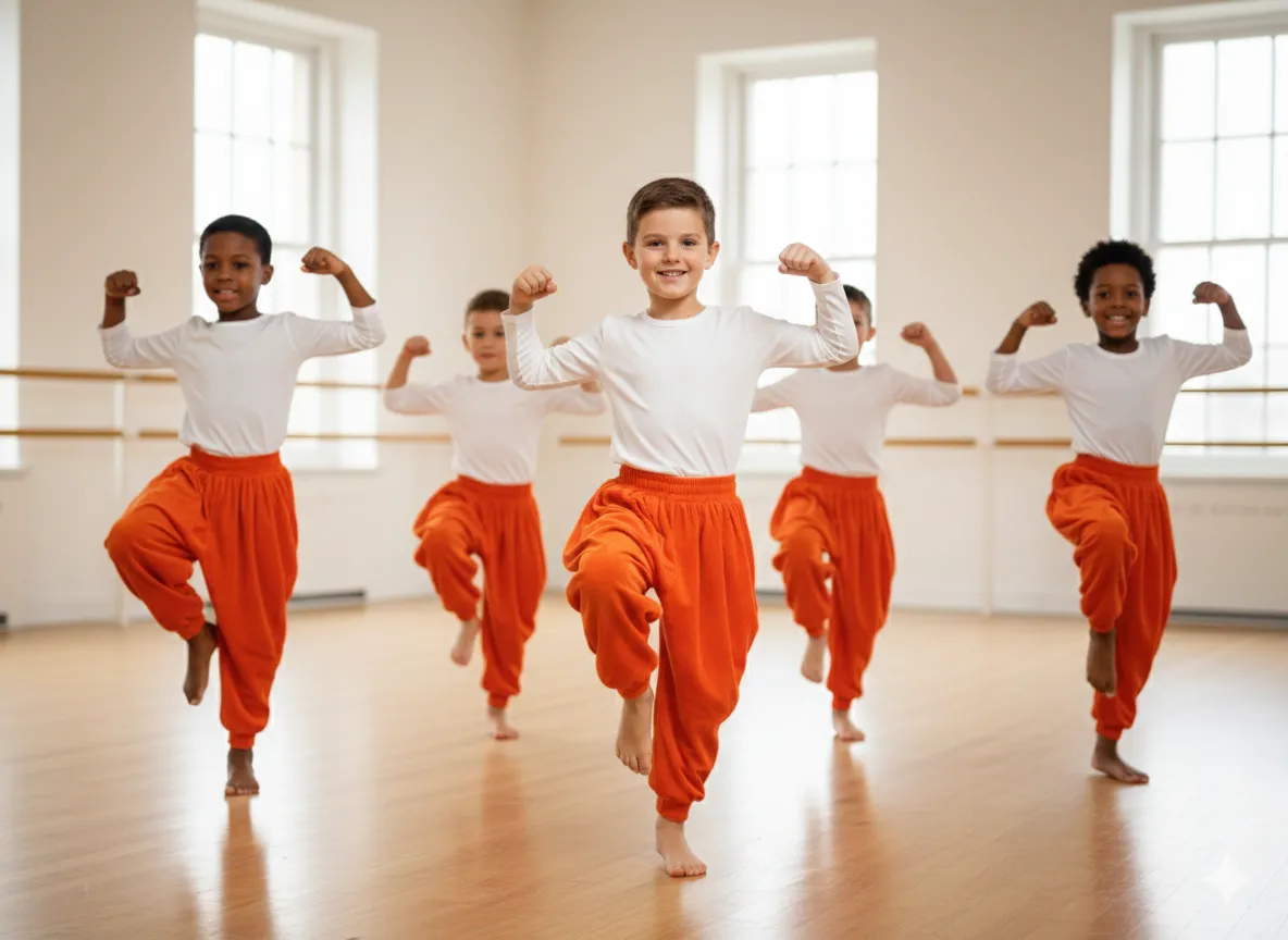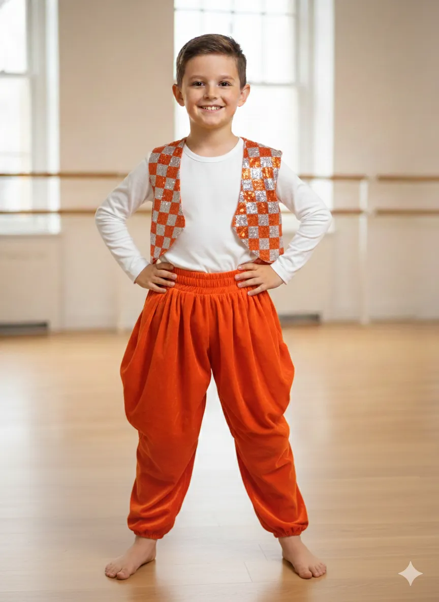 Boy's White Top with Orange Harem Pants Dance Costume - White & Orange