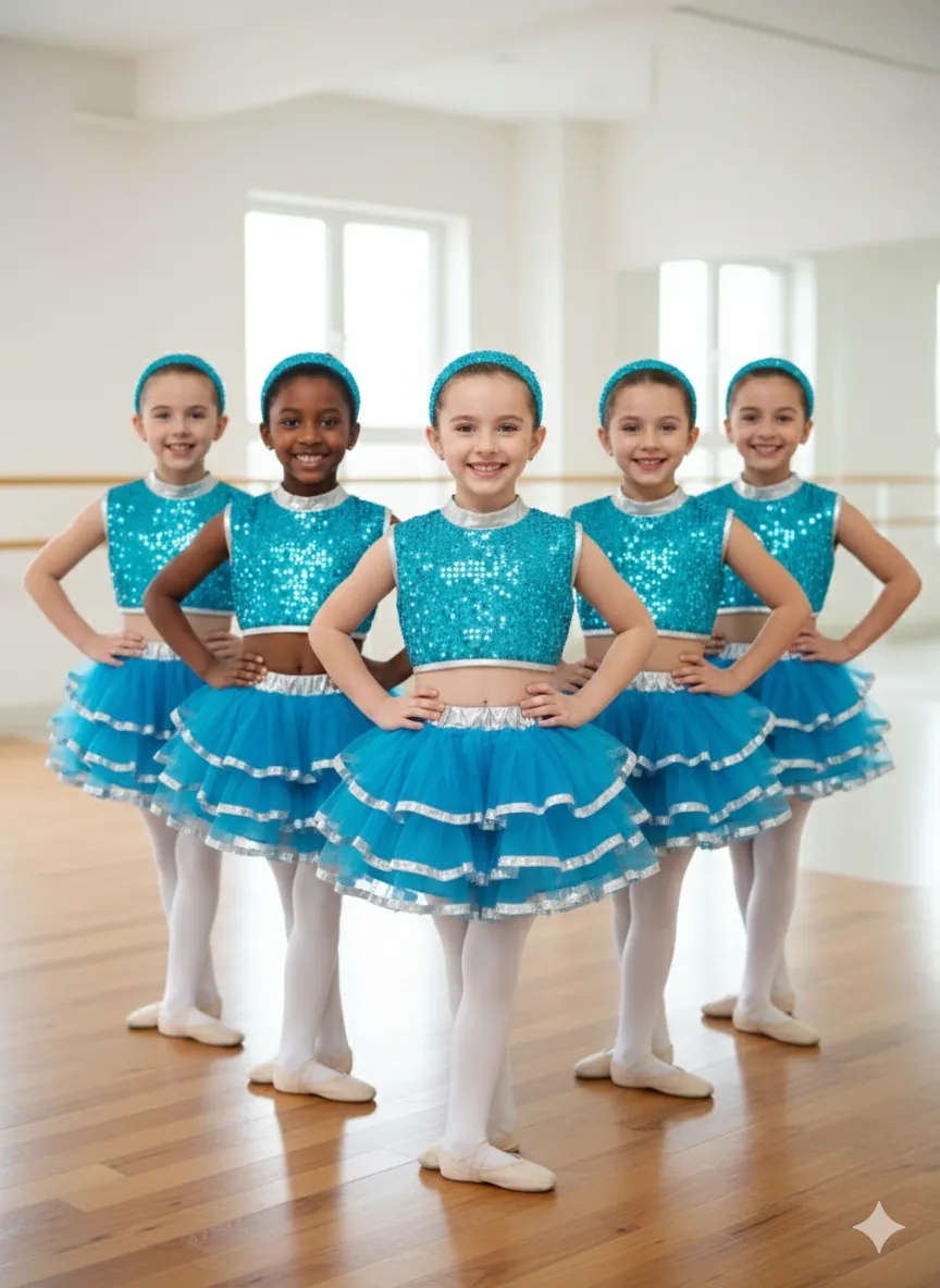 Girl's Blue Ruffle Dance Costume - Blue & Silver