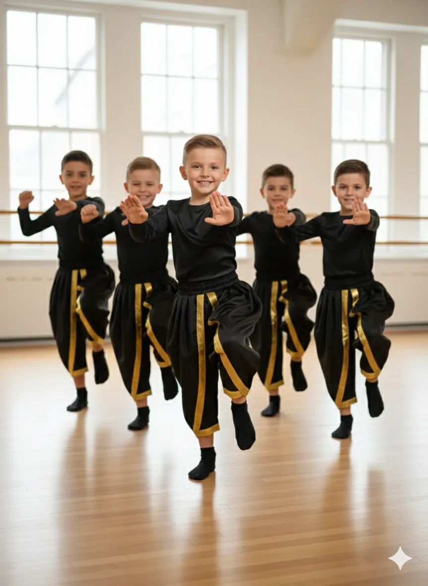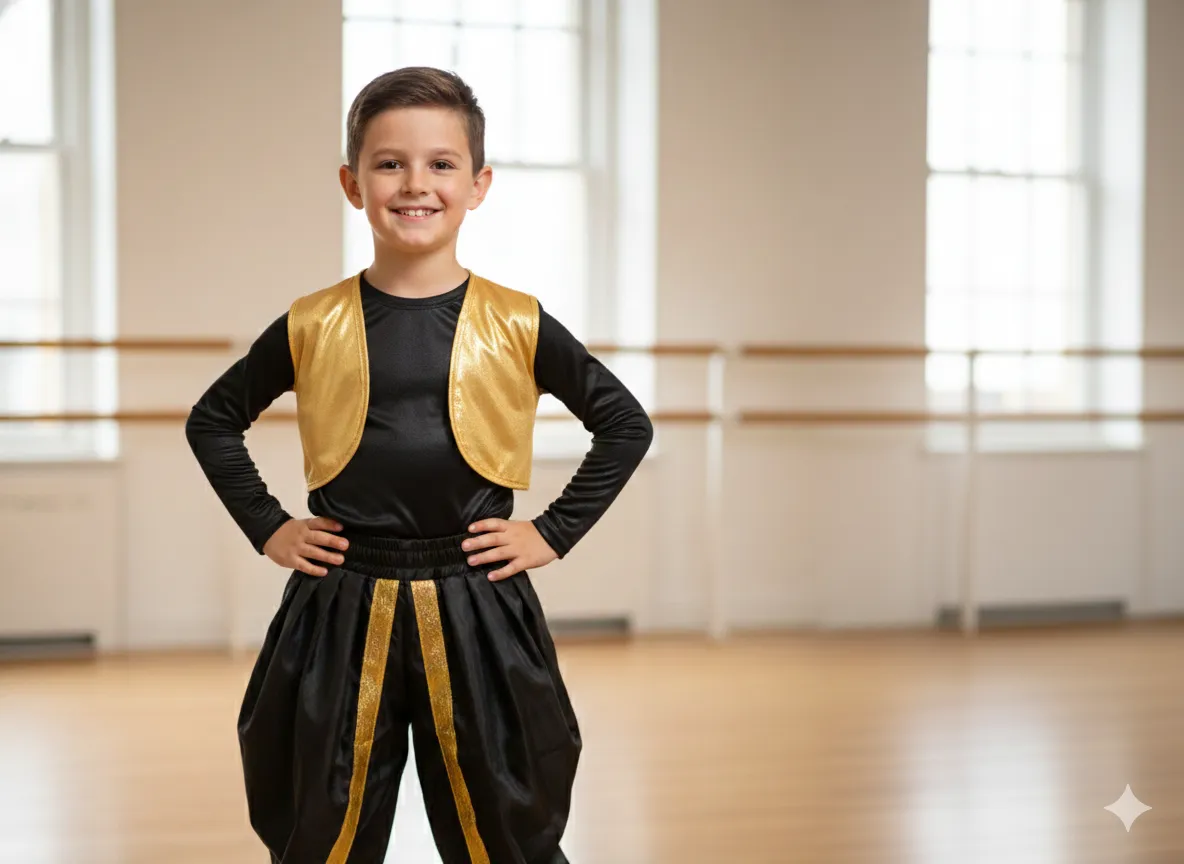 Boy's Gold & Black Dance Dhoti & Golden T-shirt Costume - Gold & Black
