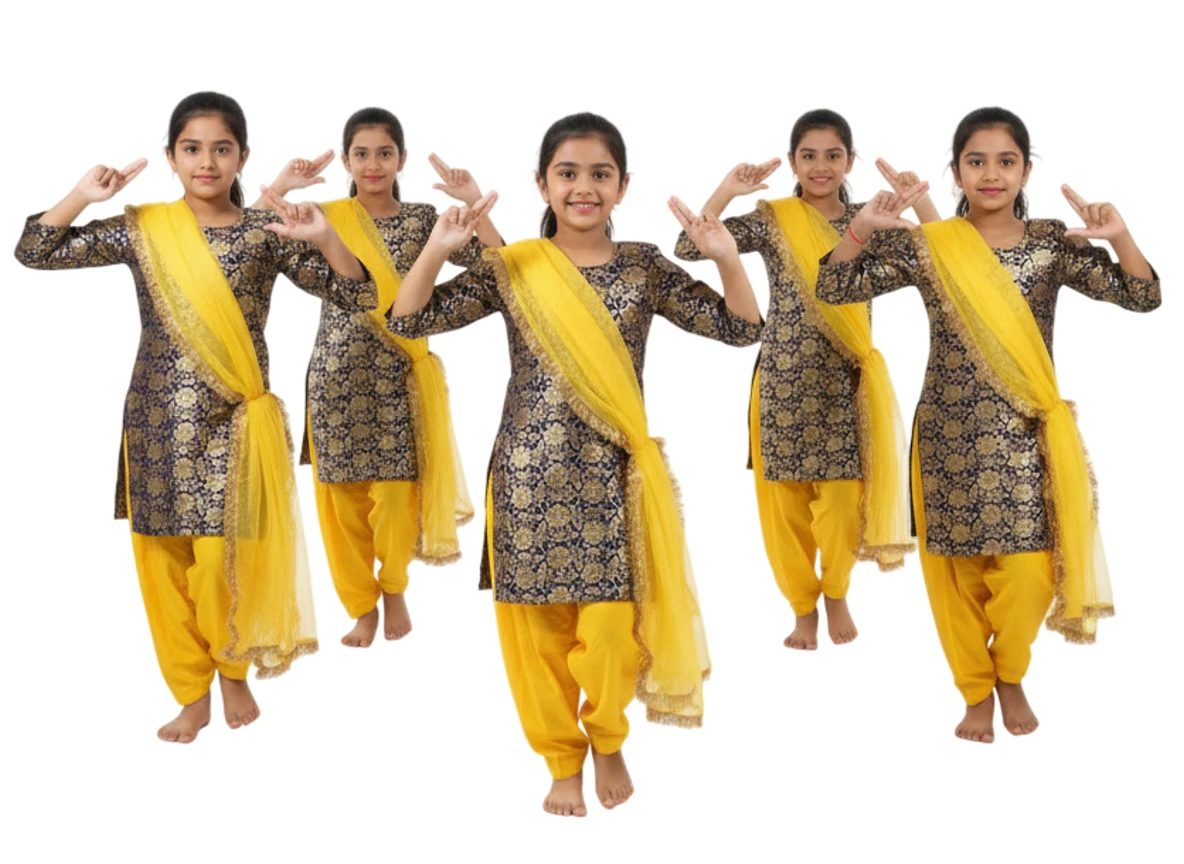 Girls Punjabi Patiala Suit for School Dance, Annual Function & Cultural Events - Yellow & Blue