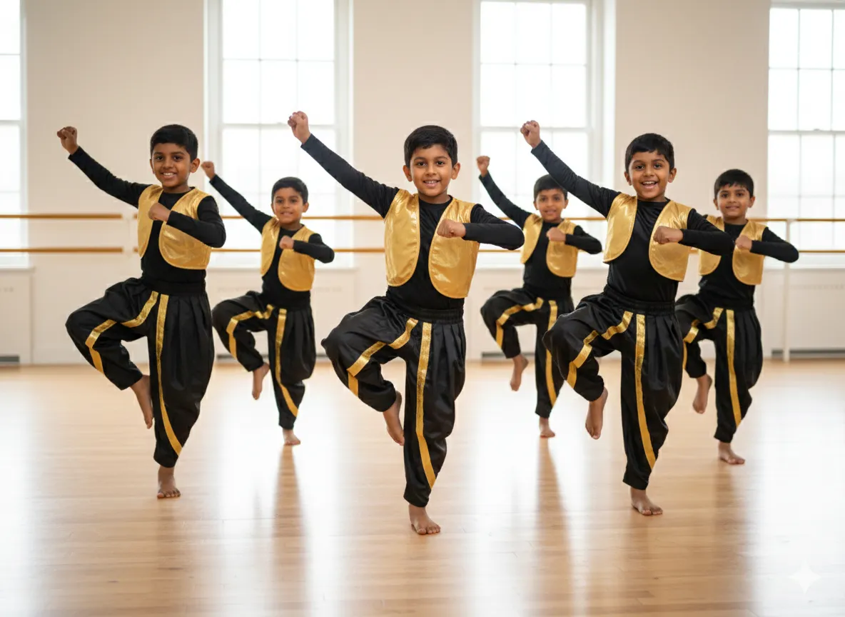 Boy's Gold & Black Dance Dhoti & Golden T-shirt Costume - Gold & Black