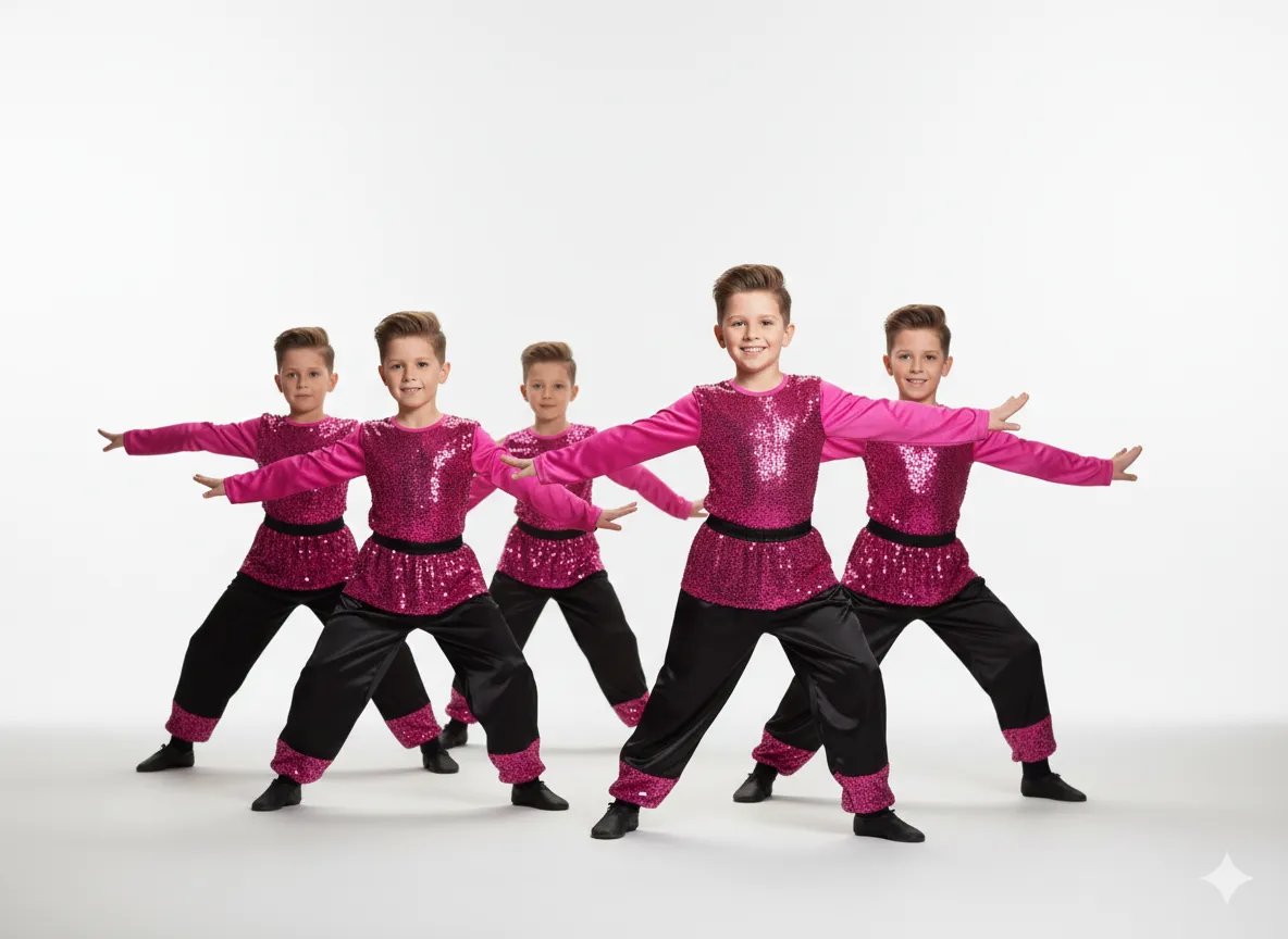 Boy's Pink Sequin Dance Costume with Black Pants - Pink & Black